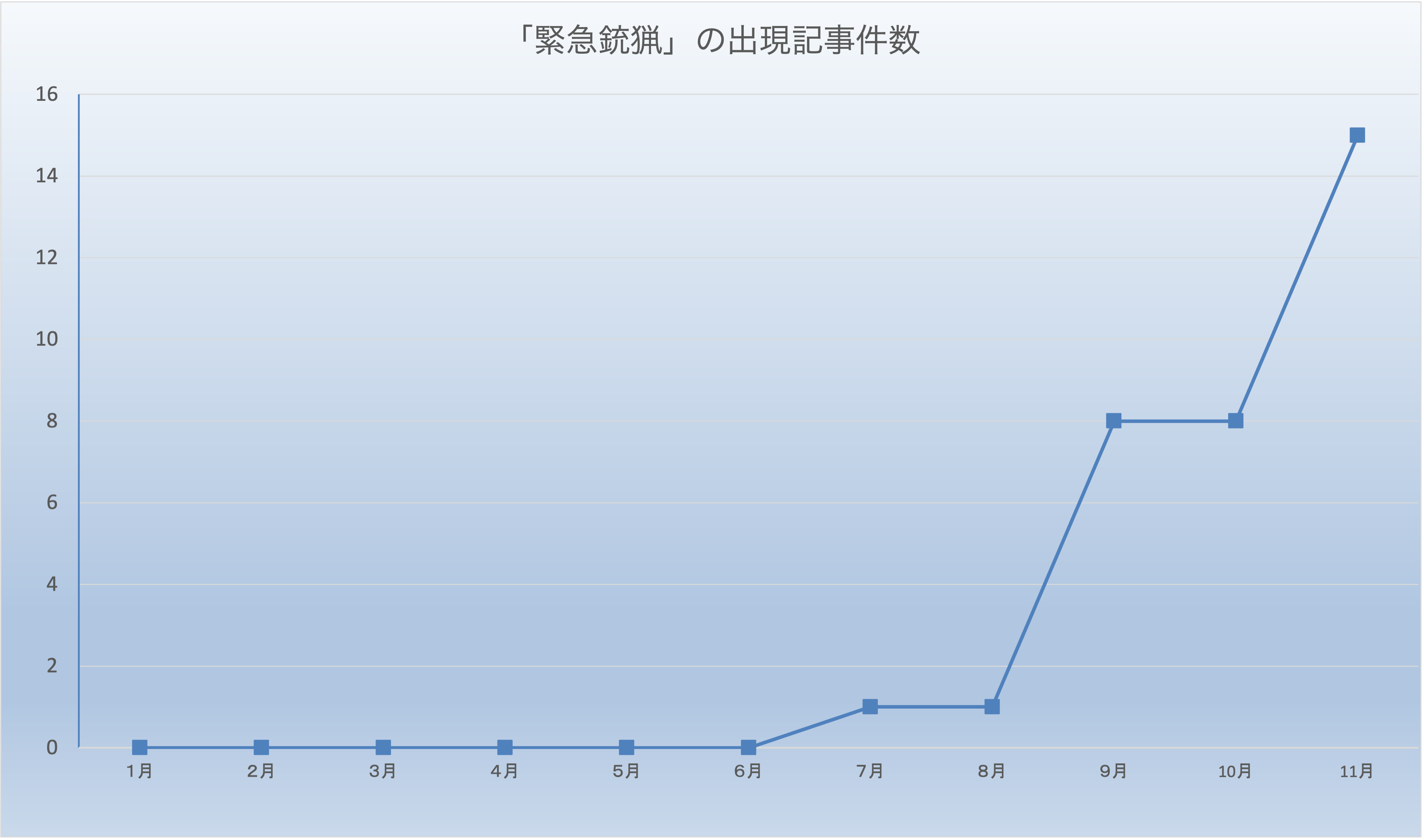 新聞記事データベース「日経テレコン」で検索したところ、日本経済新聞で「緊急銃猟」が初めて紙面に出現したのは2025年7月16日付朝刊社会面の「クマ人里侵入 異例の事態」という記事。これは北海道で新聞配達中の男性がヒグマに襲われ死亡した事故などを検証したものでした。7月と8月は1件ずつの出現でしたが、改正鳥獣保護管理法の施行で「緊急銃猟」が始まった9月は8件と急増。10月の8件を経て11月は15件(18日現在)にもなり、今後も増えそうな勢いです。